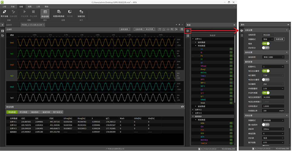 設(shè)備連接成功后,可通過(guò)MTA軟件完成設(shè)備操控與數(shù)據(jù)監(jiān)控。以功率計(jì)產(chǎn)品為例,圖7展示了其遠(yuǎn)程操作界面。通過(guò)此界面,工程師可以: