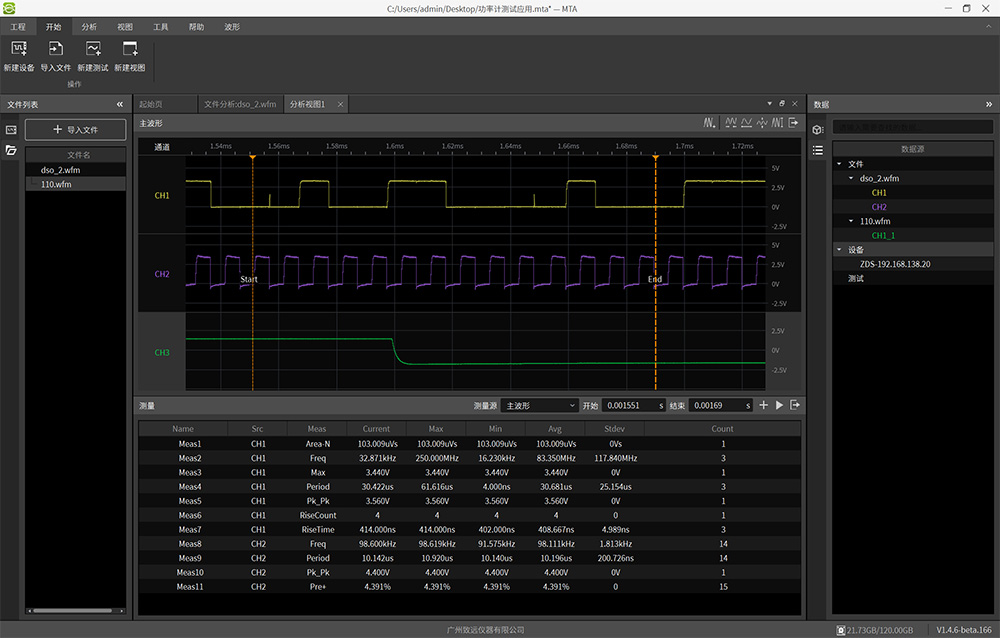 MTA Studio全稱Measure & Test & Analyze Studio,是面向電力電子測(cè)試測(cè)量應(yīng)用的綜合性分析軟件平臺(tái)。與傳統(tǒng)的單一功能軟件不同,MTA Studio將操作設(shè)備、分析文件、執(zhí)行測(cè)試、工程分析等核心功能集成在同一平臺(tái)內(nèi),實(shí)現(xiàn)"一個(gè)平臺(tái),多種應(yīng)用"。
