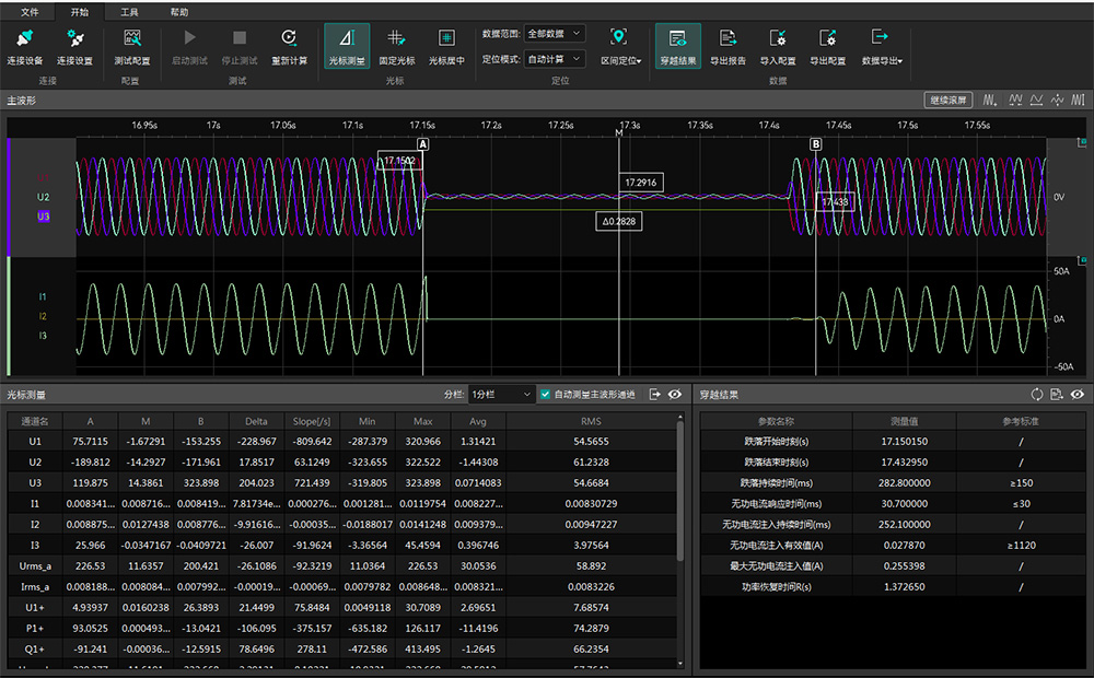 圖13 電壓穿越測(cè)試結(jié)果